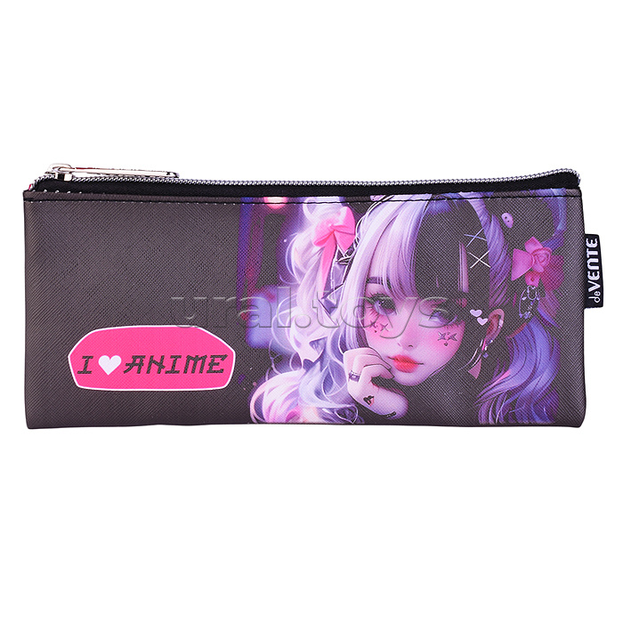 Пенал "I Love Anime" 21,5x9x1 см, плоский для 35 предметов, на молнии, искусственная кожа с антивандальной фактурой, с подкладом