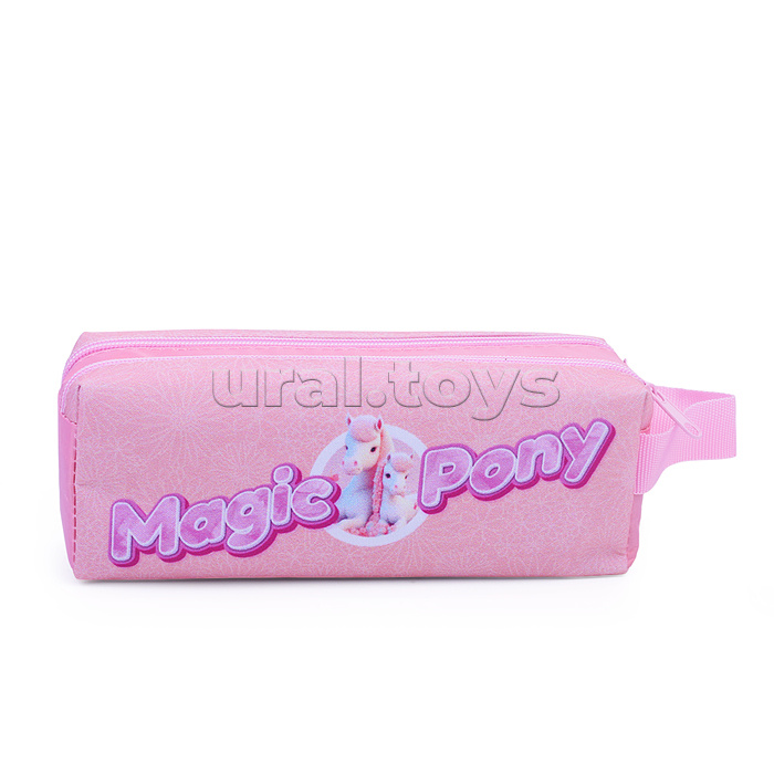 Пенал-косметичка, двухсекционный (двухсторонняя печать, ткань) с ручкой "Милые пони 2024" 200/90/55