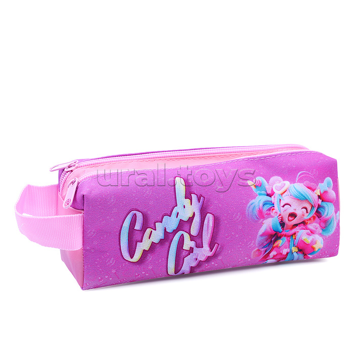 Пенал-косметичка, двухсекционный (двухсторонняя печать, ткань) с ручкой "Современная кукла 2024" 200/90/55