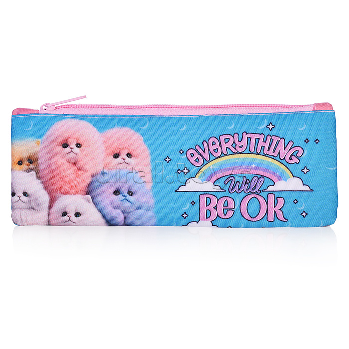 Пенал-косметичка на молнии малый, печать на ткани "Разноцветные пушистики"