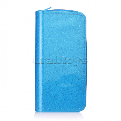 Пенал-косметичка односекционный с блестками 190/100/26 "Голубой"
