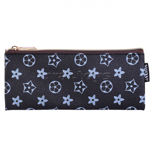 Пенал "Monogram" 21,5x9x1 см, плоский для 35 предметов, на молнии, искусственная кожа до -40C с антивандальной фактурой, с подкладом, коричневый