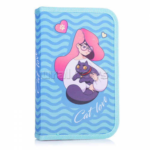 Пенал односекционный большой с откидной планкой печать на ткани "Cats Love 2023"