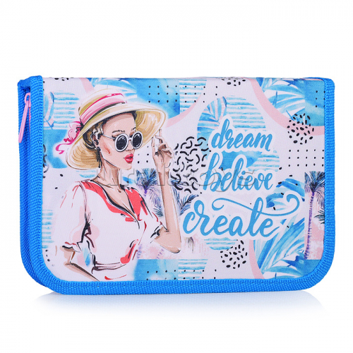Пенал односекционный большой с откидной планкой печать на ткани "Красотка в шляпке"130/200