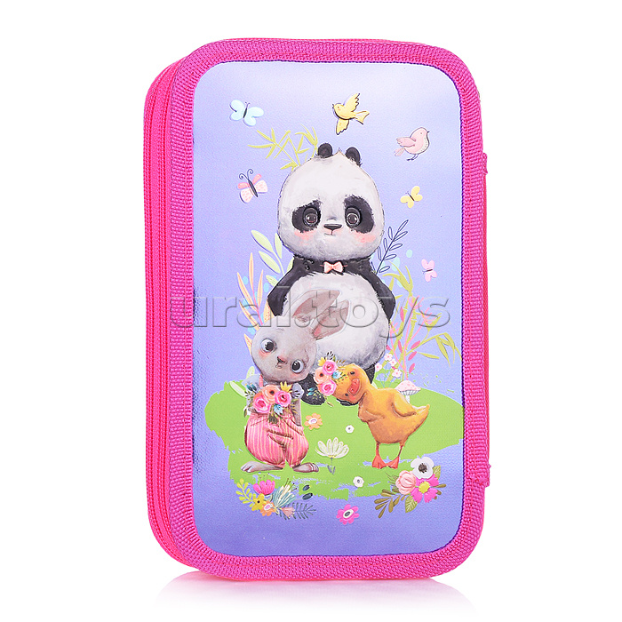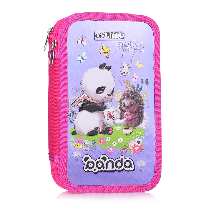 Пенал "Panda" 20,5x12 см, двухстворчатый прямоугольный, на молнии, картон с покрытием из фольги с конгревным тиснением