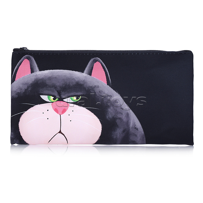 Пенал плоский, Недовольный кот, размер: 20,5*10,8 см. Изготовлен из полиэстера, 210 ден. Имеется одно основное отделение на молнии. Предназначен хранения, канцелярских принадлежностей и прочих мелочей, может использоваться в качестве необольшой косметичк