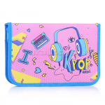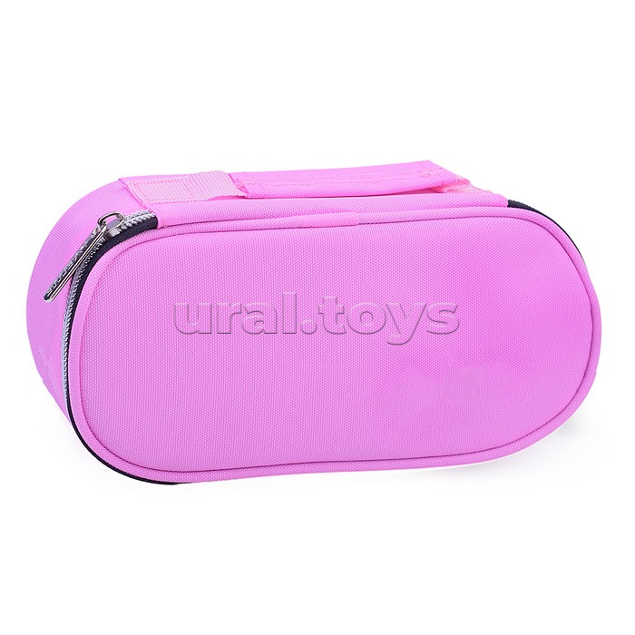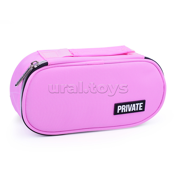 Пенал "Private" 21x10x6 см, овальный для 60 предметов, с внутренним органайзером-тройной створкой, с ручкой для переноски, текстильный с каучуковой аппликацией, на молнии, розовый