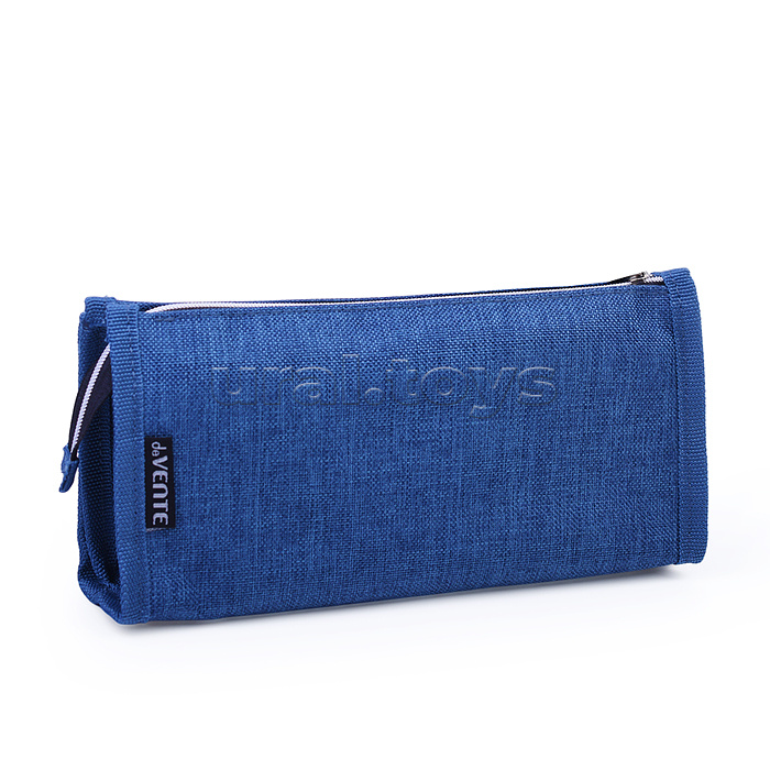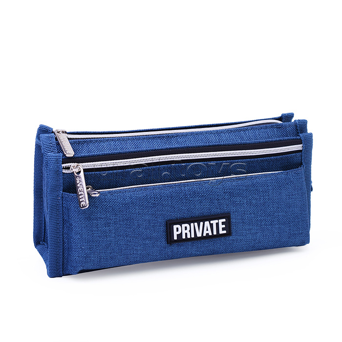 Пенал "Private" 21x10x7,5 см, прямоугольный для 60 предметов, текстильный, на молнии, 2 наружных объемных кармана на молнии, органайзер, с аппликацией из каучука, с ручкой-петлей, темно-синий