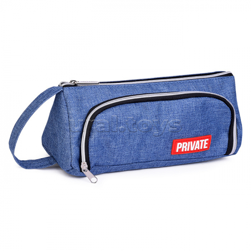 Пенал "Private" 21x8,5x8,5 см, треугольный для 70 предметов, текстильный, на молнии, с ручкой, наружный объемный карман на молнии с плавающей перегородкой, с каучуковой аппликацией, темно-синий
