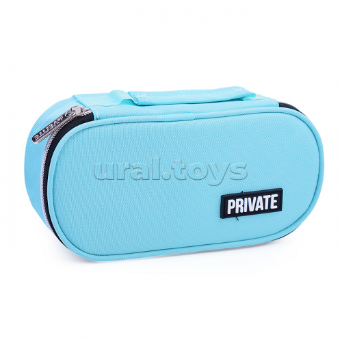 Пенал "Private" 21x9x5 см, прямоугольный, матовая искусственная кожа, на молнии, 3 внутренних отделения с перегородками, с каучуковой аппликацией, серебристый