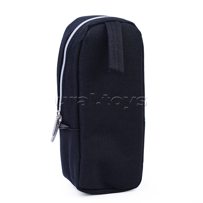 Пенал "Private" 21x9x6 см, прямоугольный вертикальный для 60 предметов, текстильный, на молнии, фиксация в открытом виде магнитом, с каучуковой аппликацией, петлей, черный