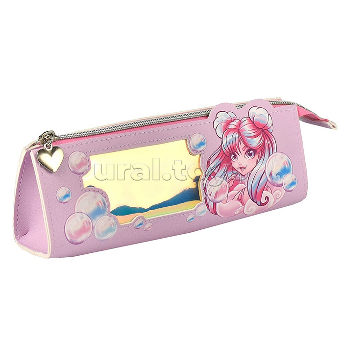 Пенал школьный "Девочка с шарами" без наполнения, 21х7,5х5 см, искусственная кожа