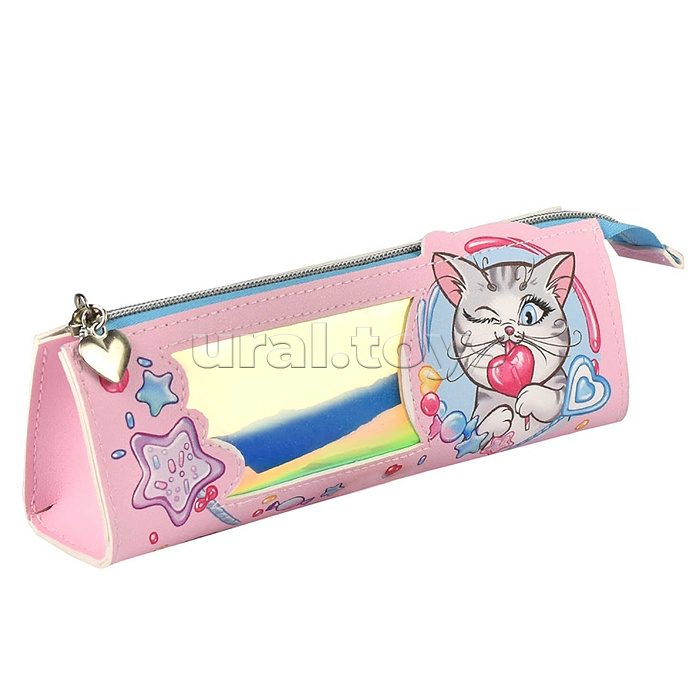 Пенал школьный "КОТ" без наполнения, 21х7,5х5 см, искусственная кожа,