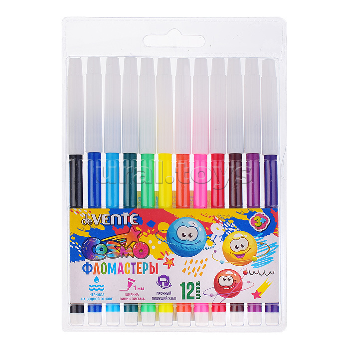 Фломастеры "Cosmo" 12 цветов с невентилируемым колпачком, в пластиковом блистере