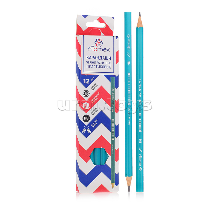 Карандаш чернографитный "Attomex" HB, диаметр грифеля 2,5 мм, шестигранный без ластика, индивидуальная маркировка, пластиковый зеленый корпус