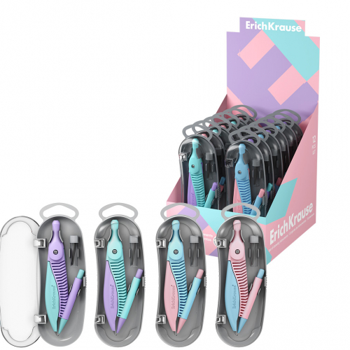 Готовальня ErichKrause Accent, (пластиковый циркуль и сменные грифели), пенал, ассорти (в коробке-дисплее по 12 шт)