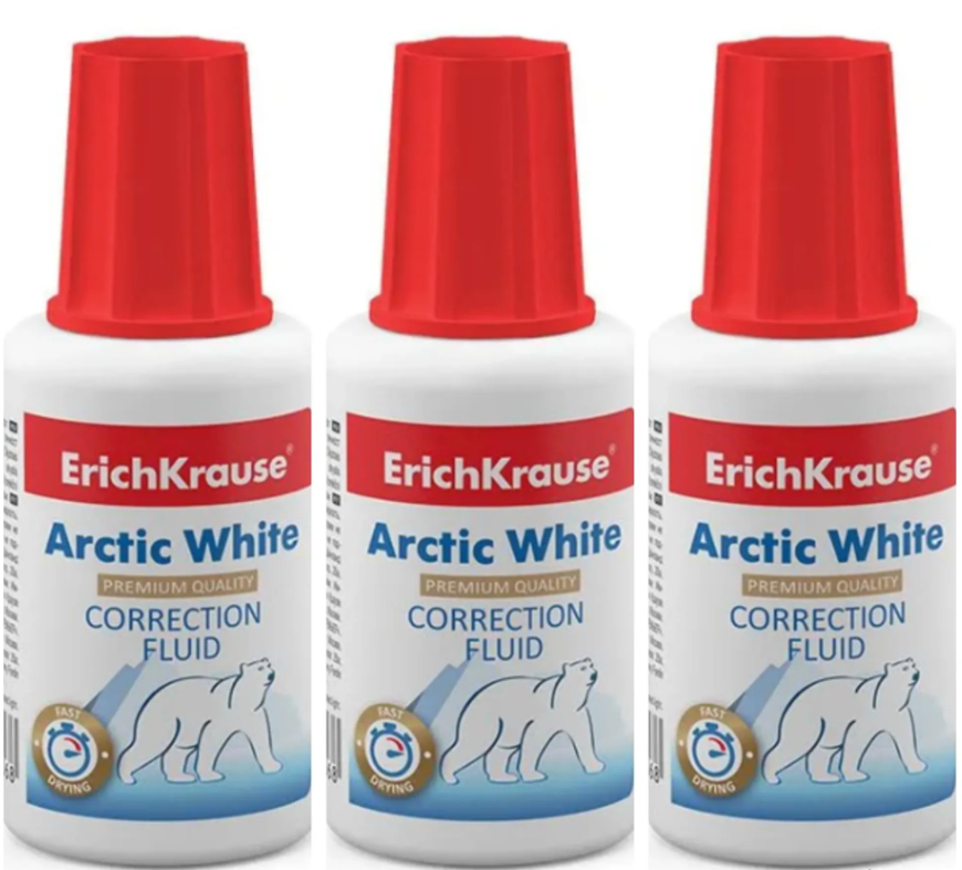 Корректирующая жидкость с кисточкой ErichKrause® Arctic white, 20мл (в пленке по 10 шт.)