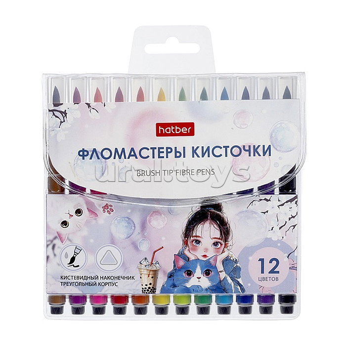 Фломастеры 12 цв. кистевидные M-Brush "Bubble-Tea" в ПВХ чехле с европодвесом