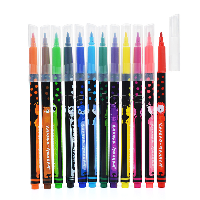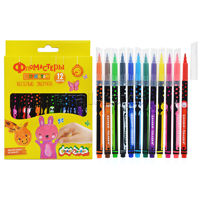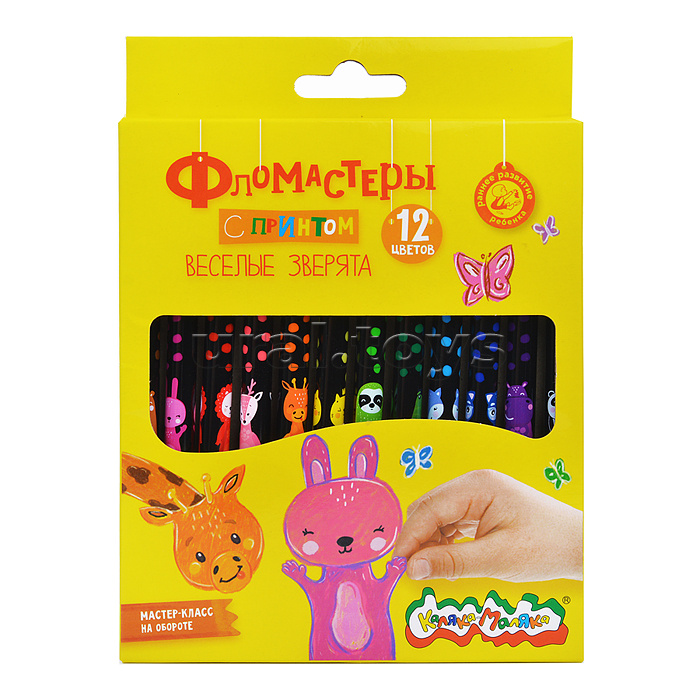 Фломастеры 12 цв. "Веселые зверята" классические, трехгран. корп. легкосмываемые карт. упак. принт на корпусе