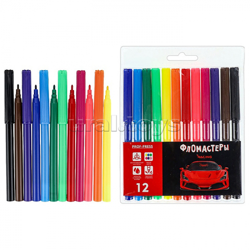 Фломастеры 12цв с вентилируемым колпачком "Красное авто" в пласт. блистере,