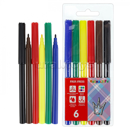Фломастеры 6цв с вентилируемым колпачком "Красное авто" в пласт. блистере,