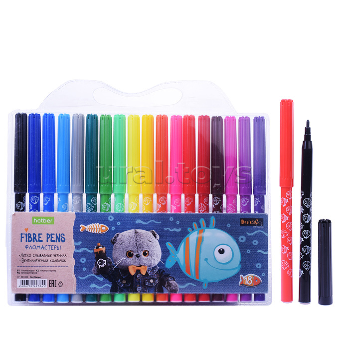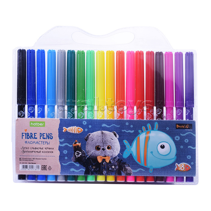 Фломастеры "ECO" 18 цв. "Кот Басик" в блистере с европодвесом