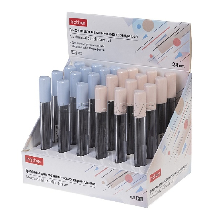 Грифели 0,5мм HB для механических карандашей, 20 шт. в пластиковом пенале