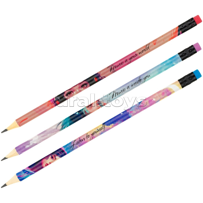 Карандаш ч/г "Girls and music" HB, заточен., с печатью, с ластиком, ассорти, туба