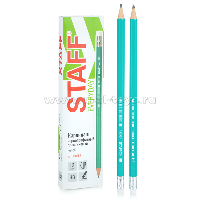 Карандаш ч/гр,. НВ, пластиковый, зеленый корпус, с резинкой, заточеный