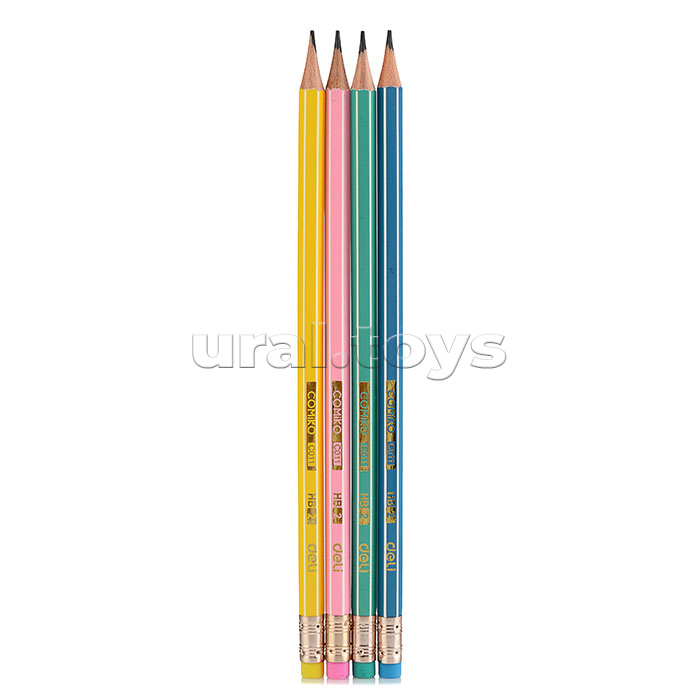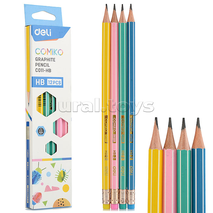 Карандаш чернографит. HB Comiko шестигран. липа, ластик, в коробке 12 штук