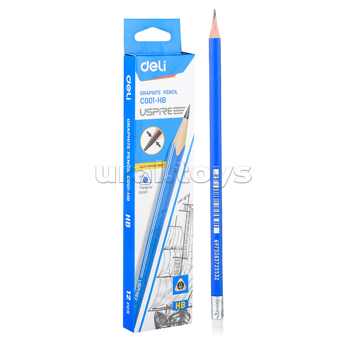 Карандаш чернографит. Uspire HB трехгранный. тополь, ластик,ударопрочный грифель