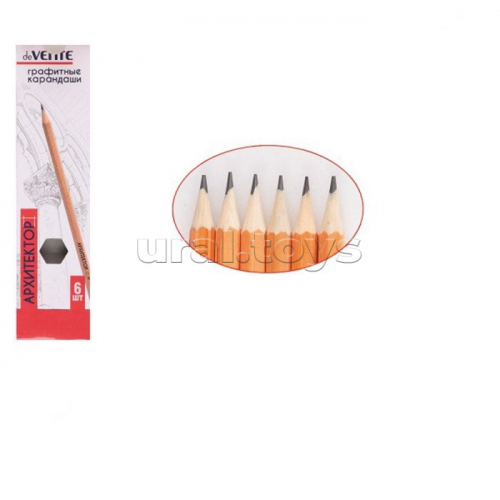 Карандаш чернографитный "Архитектор" 06 шт в наб (2Т, Т, ТМ-2, М, 2М) диаметр грифеля 2 мм, шестигранный, заточенный, в картонной коробке, корпус натуральный лакированный