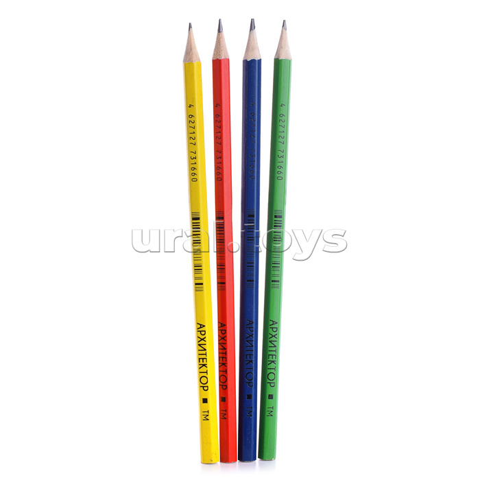 Карандаш чернографитный "Архитектор" ТМ, диаметр грифеля 2 мм, шестигранный, заточенный, лакированный, цвета корпуса ассорти
