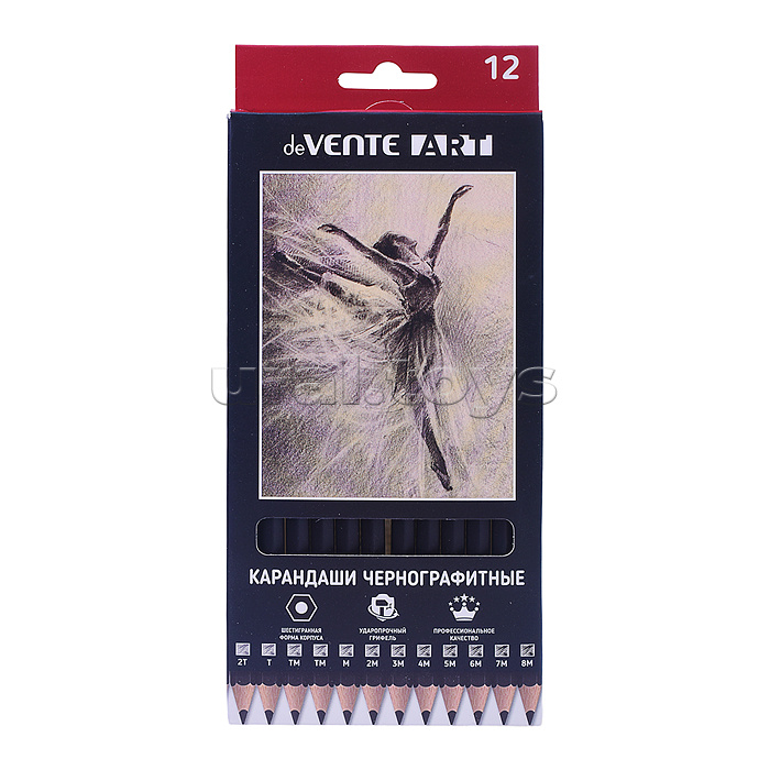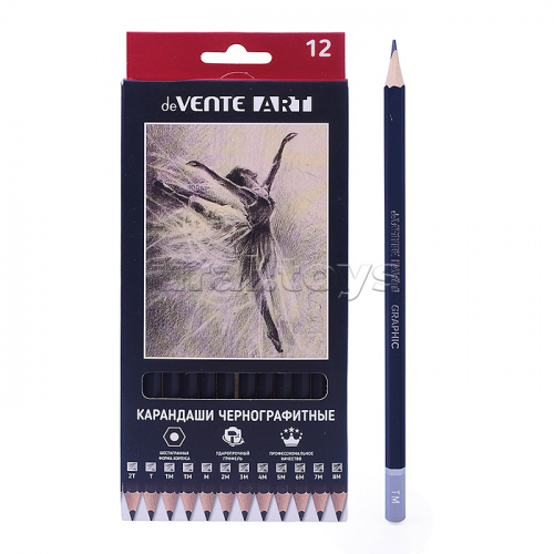 Карандаш чернографитный "Art" 12 шт в наб (2Т, Т, ТМ-2, М, 2М, 3М, 4М, 5М, 6М, 7М, 8М), шестигранный, заточенный, корпус черный с топом, в картонной коробке