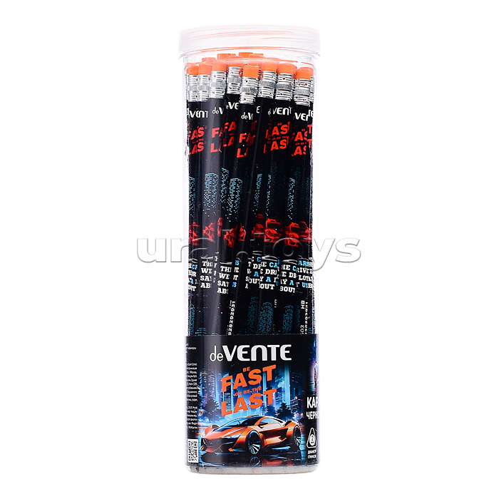 Карандаш чернографитный "Fast Or Last" HB, диаметр грифеля 2 мм, трёхгранный, с ластиком, заточенный, индивидуальная маркировка, в пластиковой тубе
