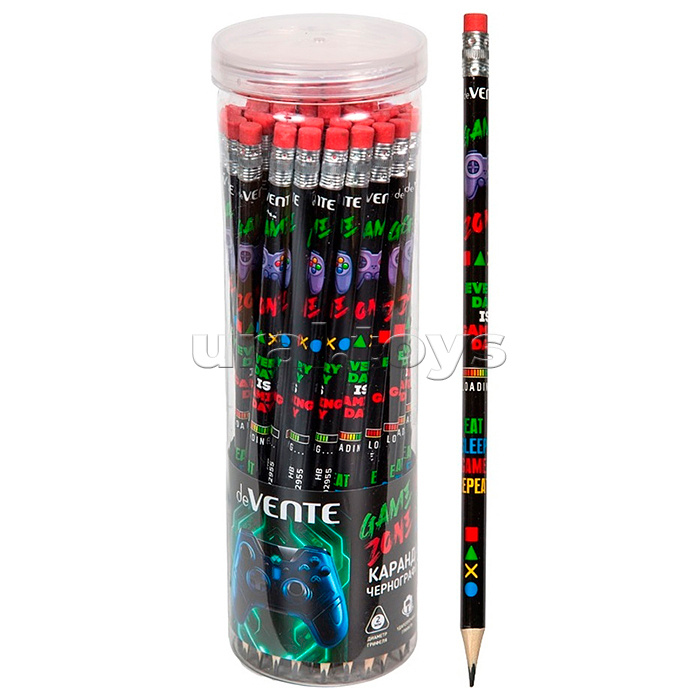 Карандаш чернографитный "Gamer" HB, диаметр грифеля 2 мм, трёхгранный, с ластиком