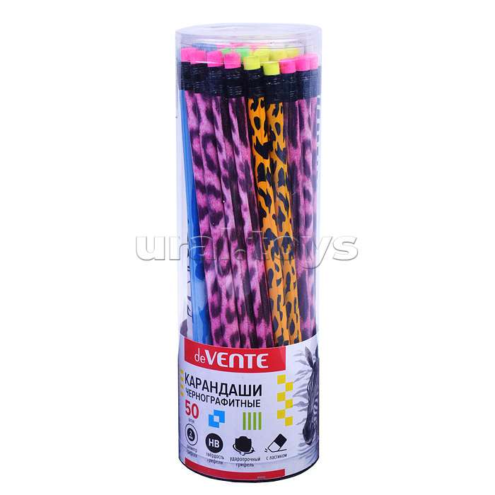 Карандаш чернографитный HB, диаметр грифеля 1,85 мм, круглый, с ластиком, animal print ассорти