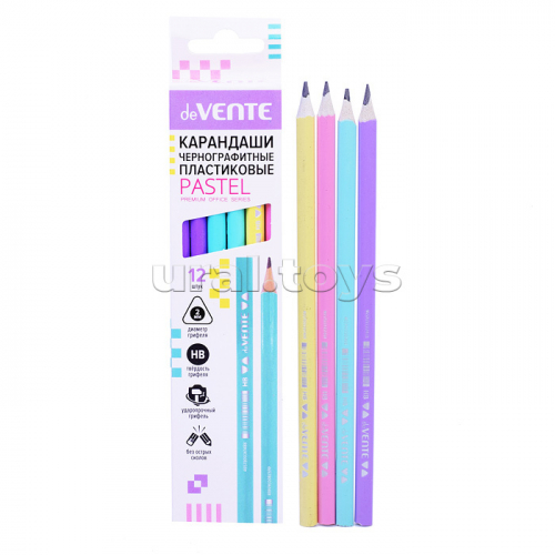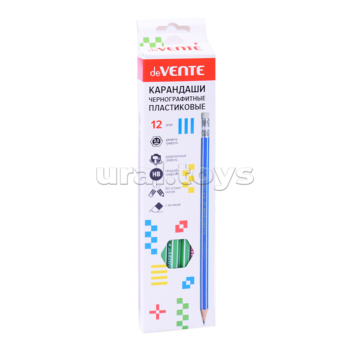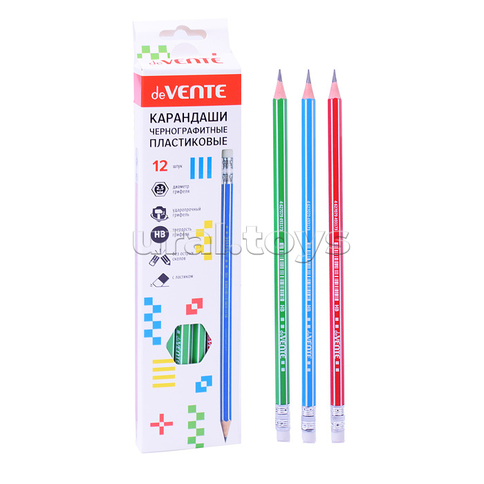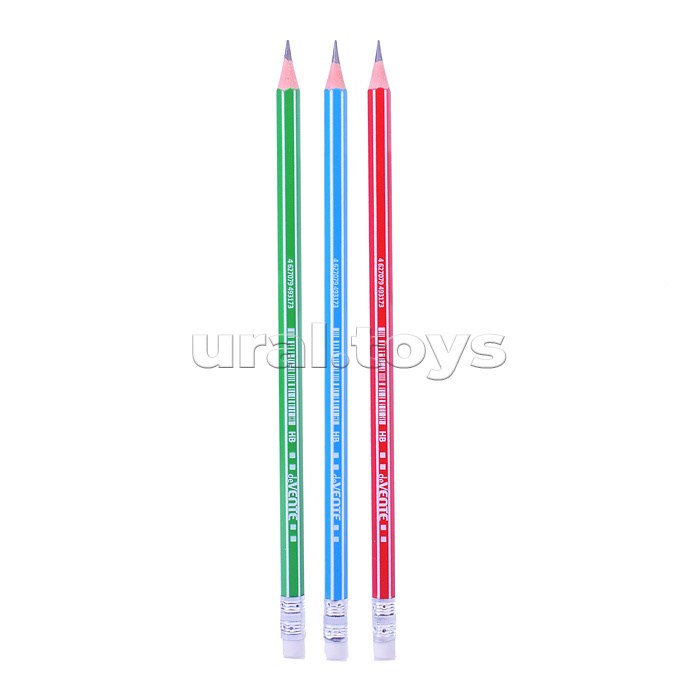 Карандаш чернографитный HB, диаметр грифеля 2,5 мм, шестигранный с ластиком, индивидуальная маркировка, пластиковый корпус ассорти