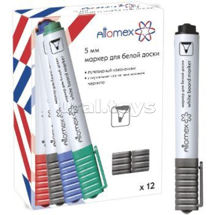 Маркер для белой доски "Attomex" круглый корпус, колпачок без клипа, пулевидный наконечник, ширина линии 3 мм, зеленый