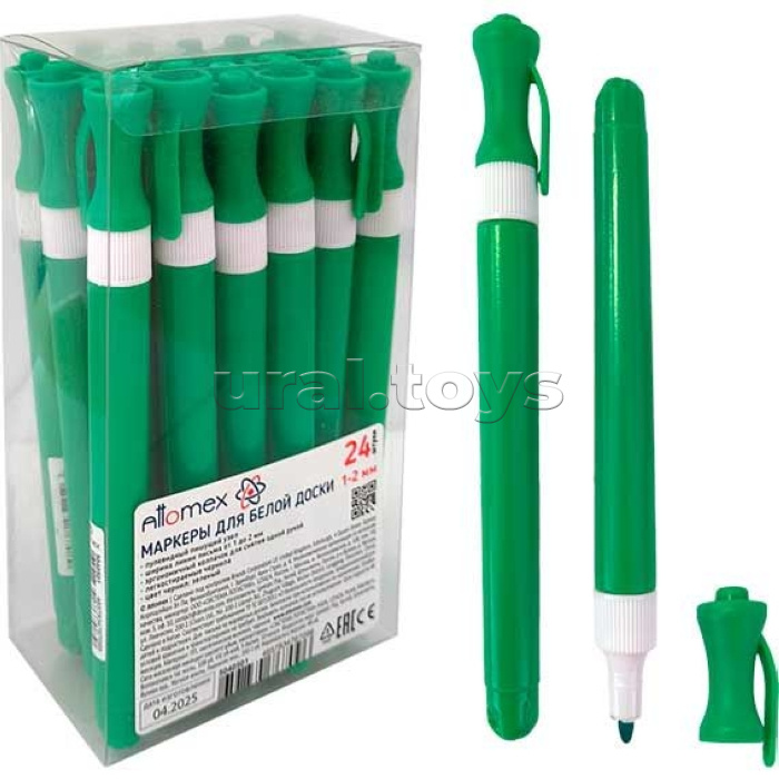 Маркер для белой доски "Ergonomy" круглый корпус, с клипом, тонкий пулевидный наконечник, ширина линии 2 мм, зеленый