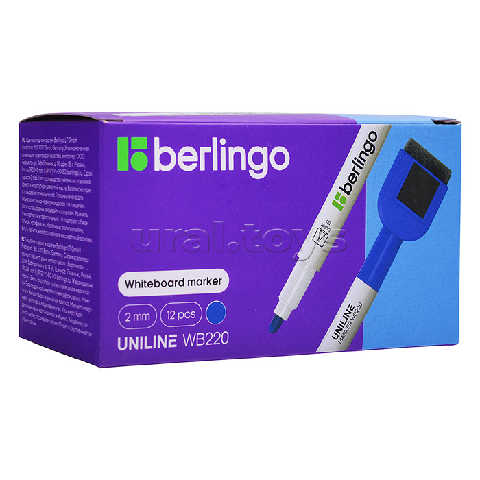 Маркер для белых досок на магните "Uniline WB220" синий, пулевидный, 2мм