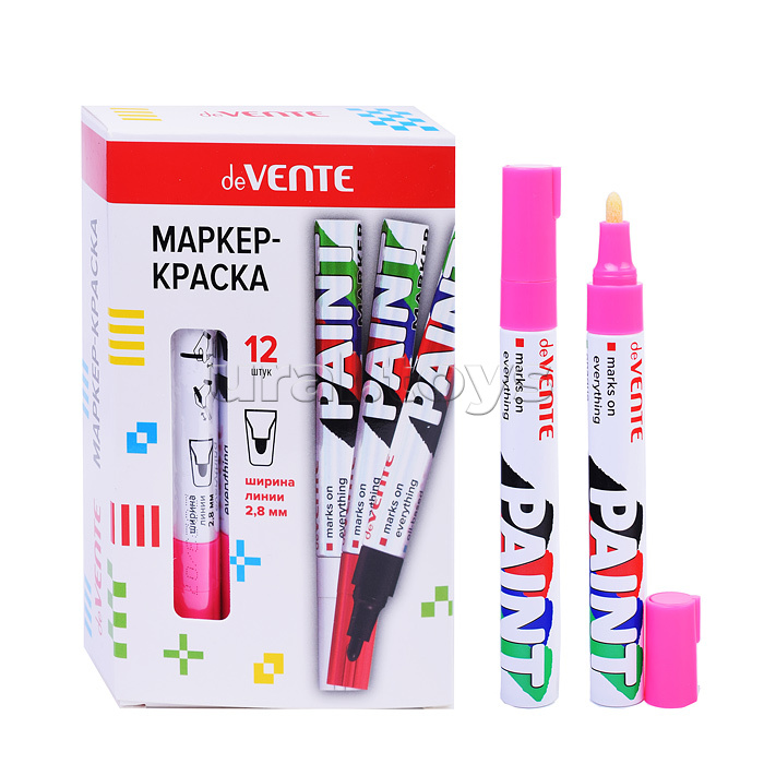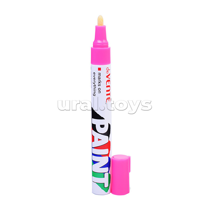 Маркер-краска круглый алюминиевый корпус, с клипом, нитро-основа, пулевидный наконечник, ширина линии 2,8 мм, длина письма 400 м, розовый