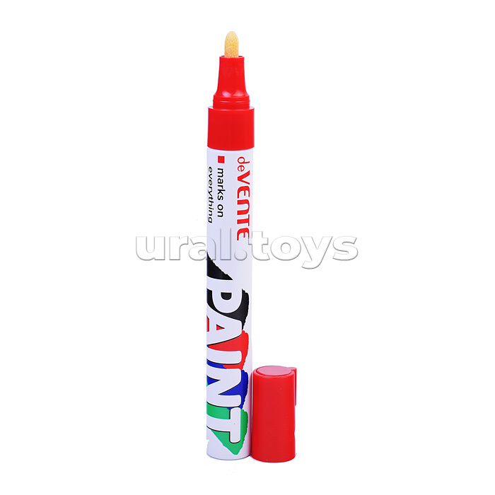Маркер-краска, круглый, алюминиевый корпус, с клипом, нитро-основа, пулевидный наконечник, ширина линии 2,8 мм, длина письма 400 м, красный