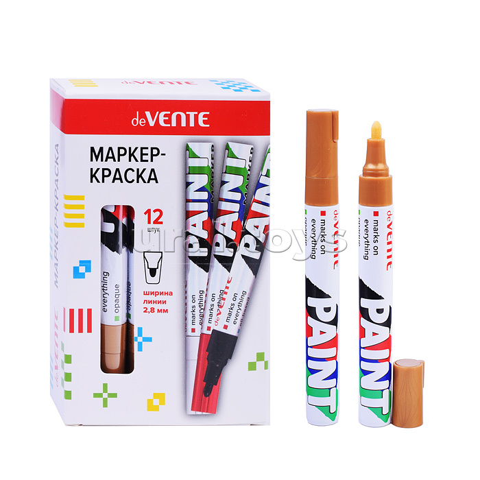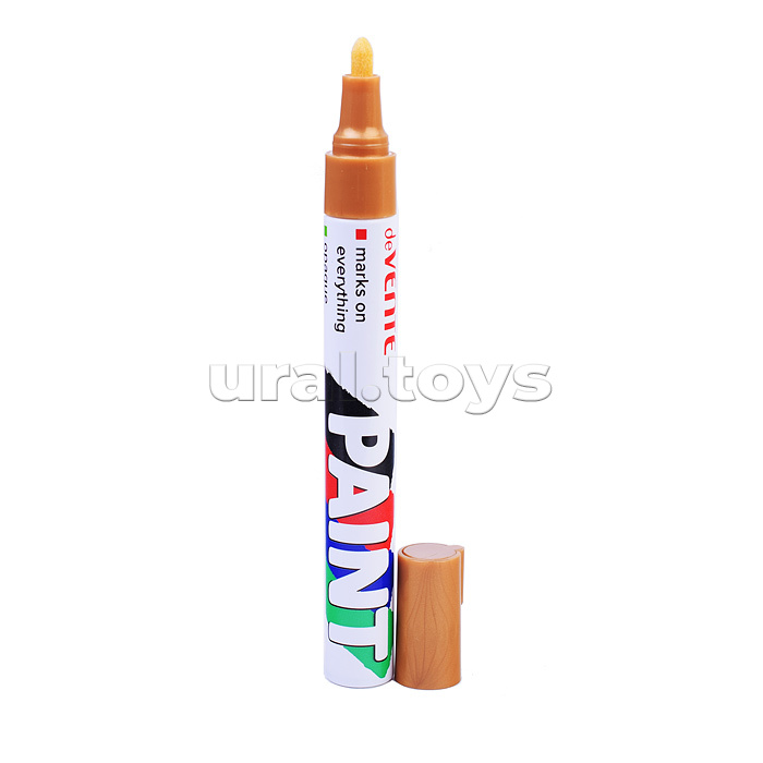Маркер-краска круглый алюминиевый корпус, с клипом, нитро-основа, пулевидный наконечник, ширина линии 2,8 мм, длина письма 400 м, золотистый