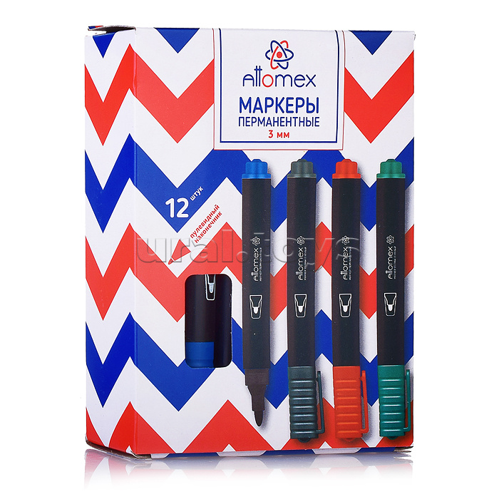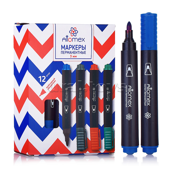 Маркер перманентный "Attomex" круглый корпус, пулевидный наконечник, ширина линии 3 мм, синий