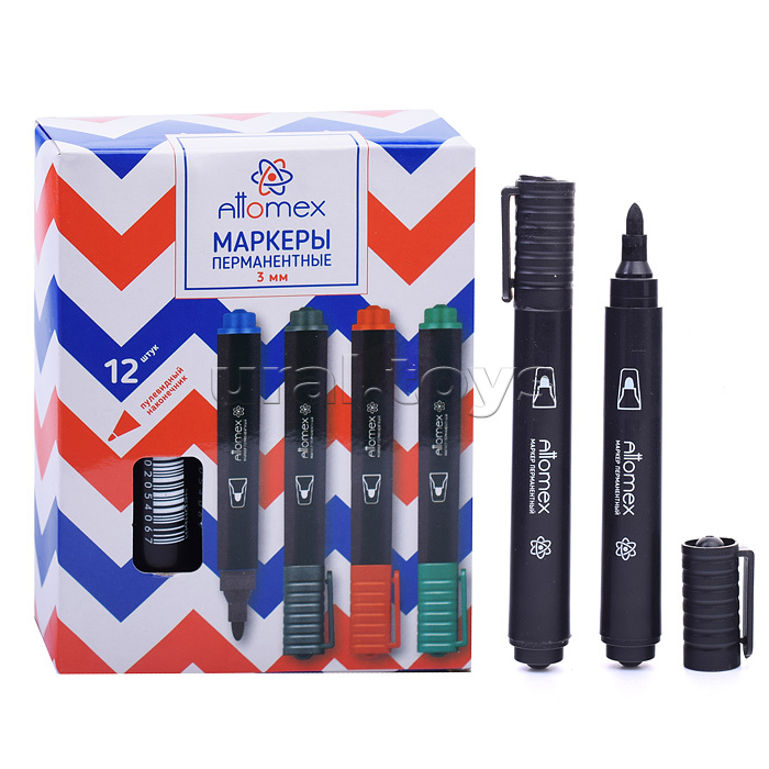 Маркер перманентный круглый корпус, пулевидный наконечник, ширина линии 3 мм, черный