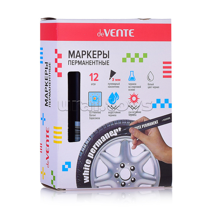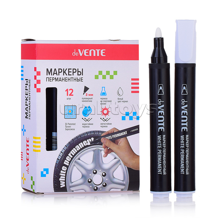 Маркер перманентный, круглый корпус, с клипом, пулевидный наконечник, ширина линии 3 мм, белый