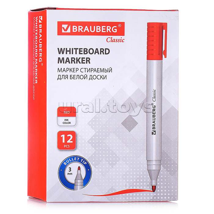 Маркер стираемый для белой доски Красный, "CLASSIC", 3 мм, с клипом