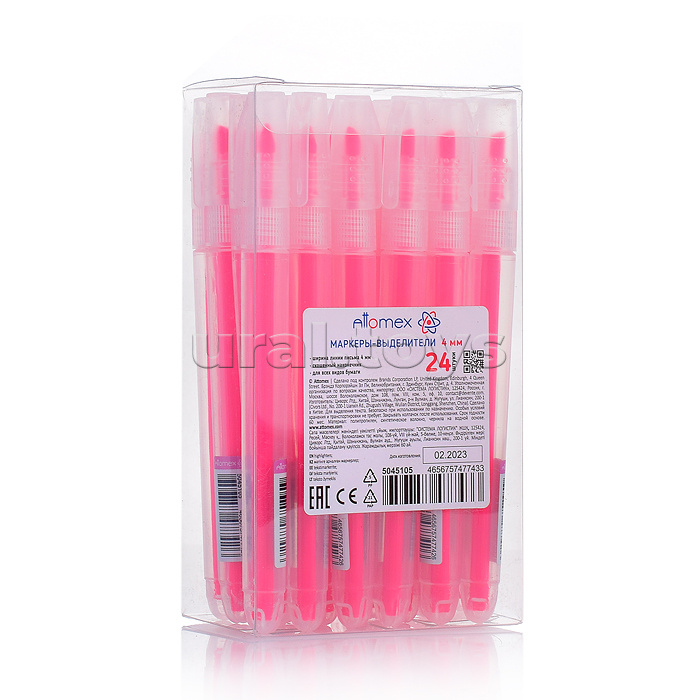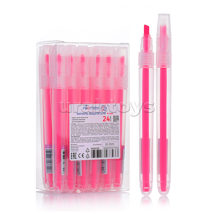 Маркер-выделитель "Attomex" круглый корпус с клипом, скошенный наконечник, ширина линии 1-4 мм, розовый