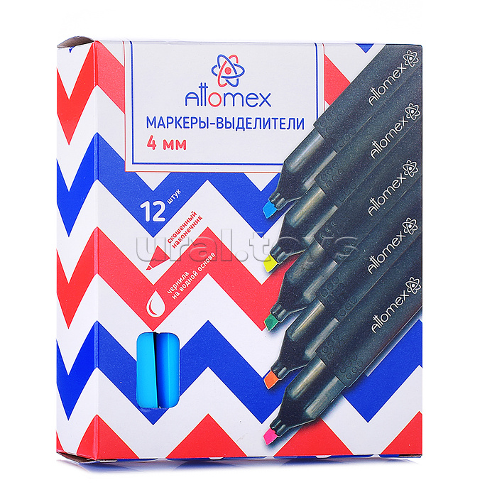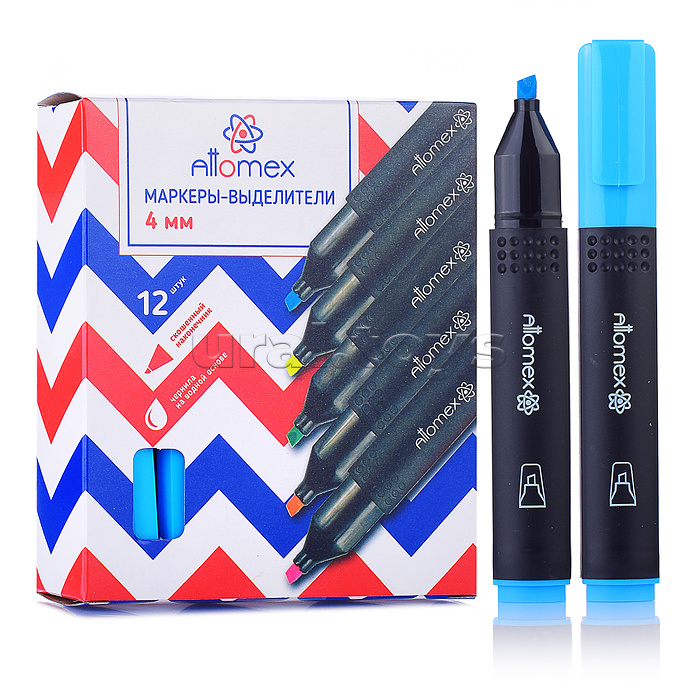 Маркер-выделитель "Attomex" плоский корпус с клипом, скошенный наконечник, ширина линии 1-4 мм, голубой